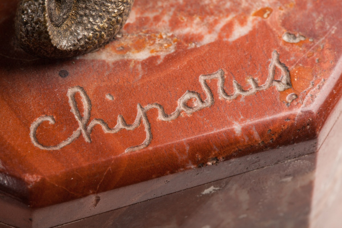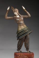 Sculpture chryséléphantine en ivoire et bronze patiné de quatre couleur, sur un socle d'onyx. Signé "chiparus".