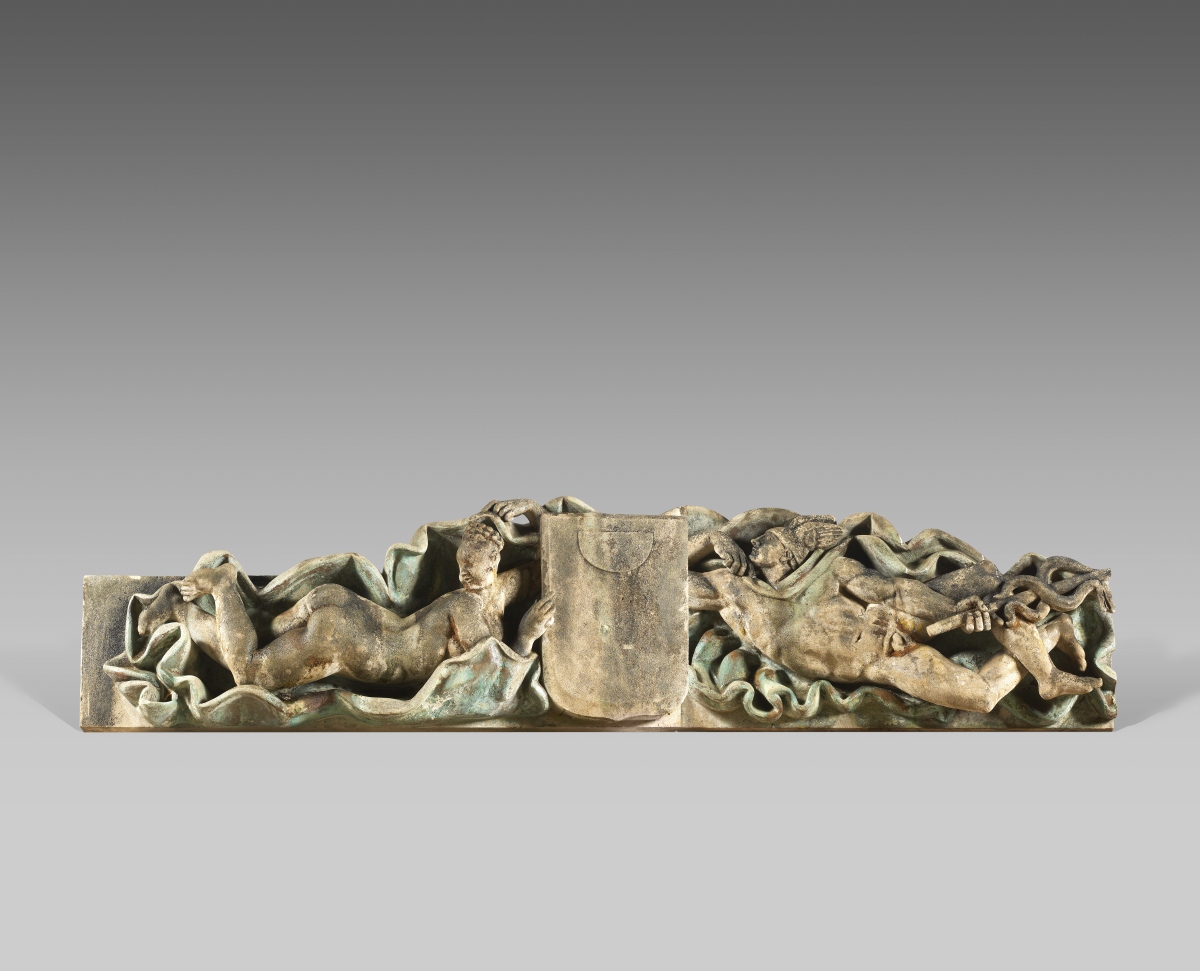 Linteaux Divinités (deux éléments) : Haut. 55, Larg. 252, Prof. 50 cm.
