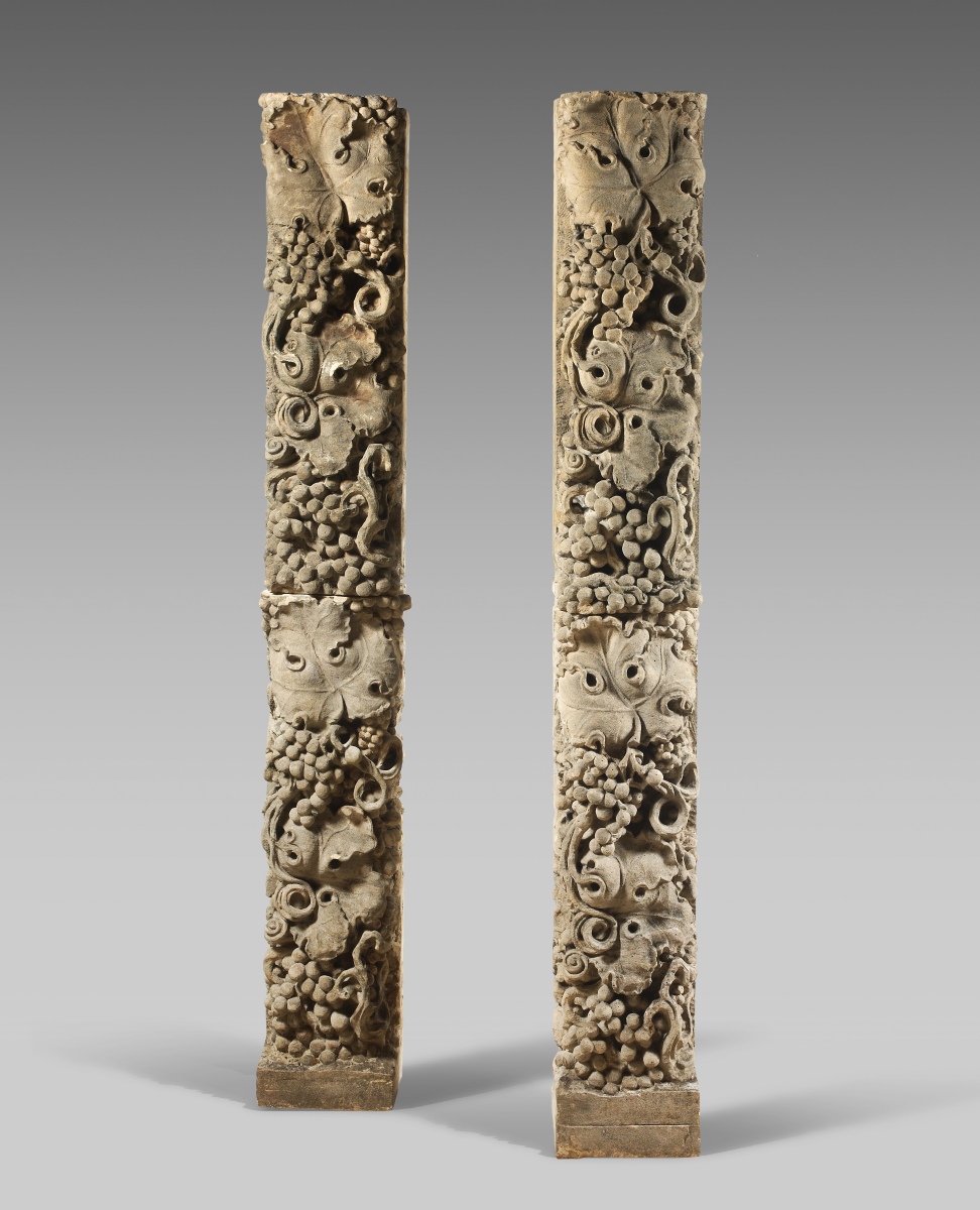 Paire de Colonnes (deux éléments). : Haut. 219, Larg. 30, Prof. 30 cm. (Accidents, manques).