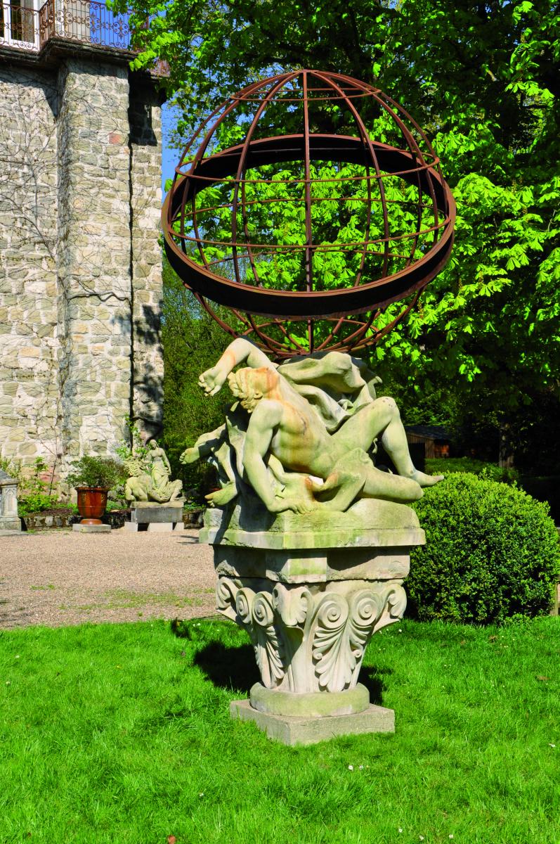 Sphère : Diam. 160 cm. (Un pied de l'Aurore restauré).