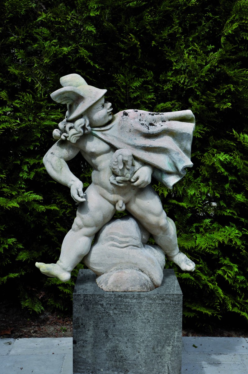 Haut. 100, Larg. 80, Prof. 35 cm. (Restaurations, notamment une aile du casque).