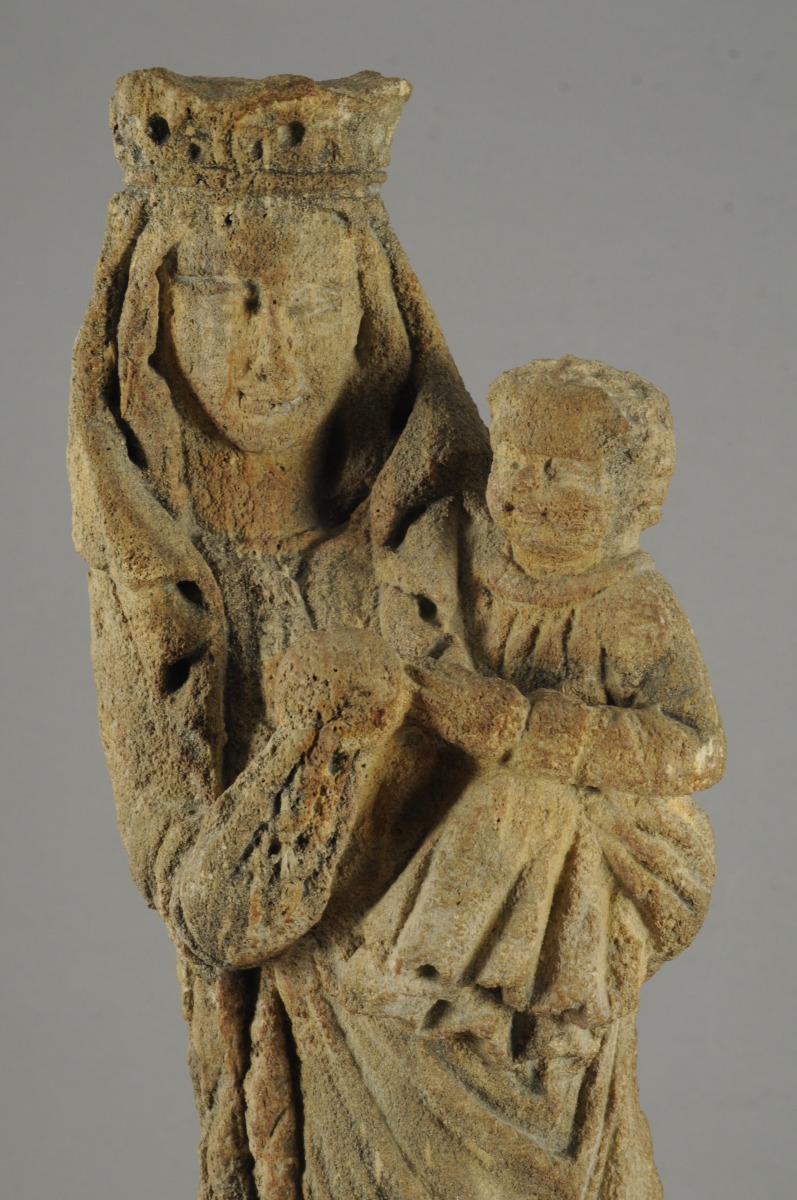 VIERGE À L'ENFANT. Calcaire. XIXème siècle, dans le goût du...