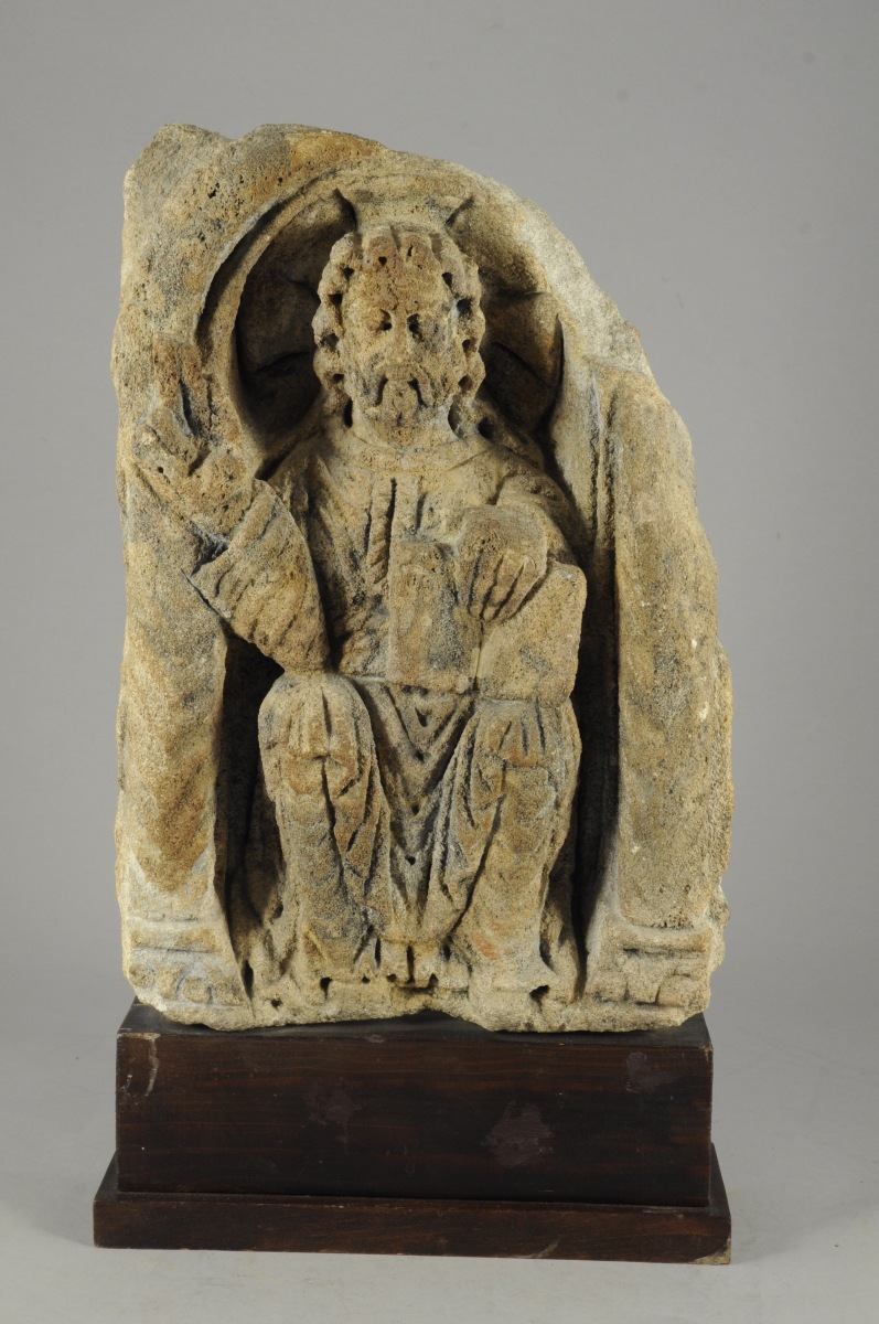 CHRIST BÉNISSANT.Calcaire.XIXème siècle, dans le goût du XIVème siècle.Haut. 40...
