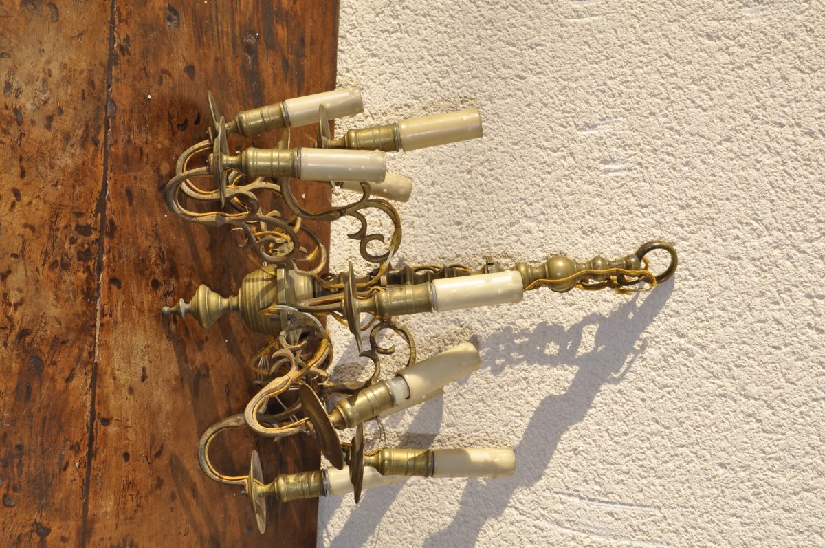 LUSTRE à clavettes en laiton à neuf bras de lumière...