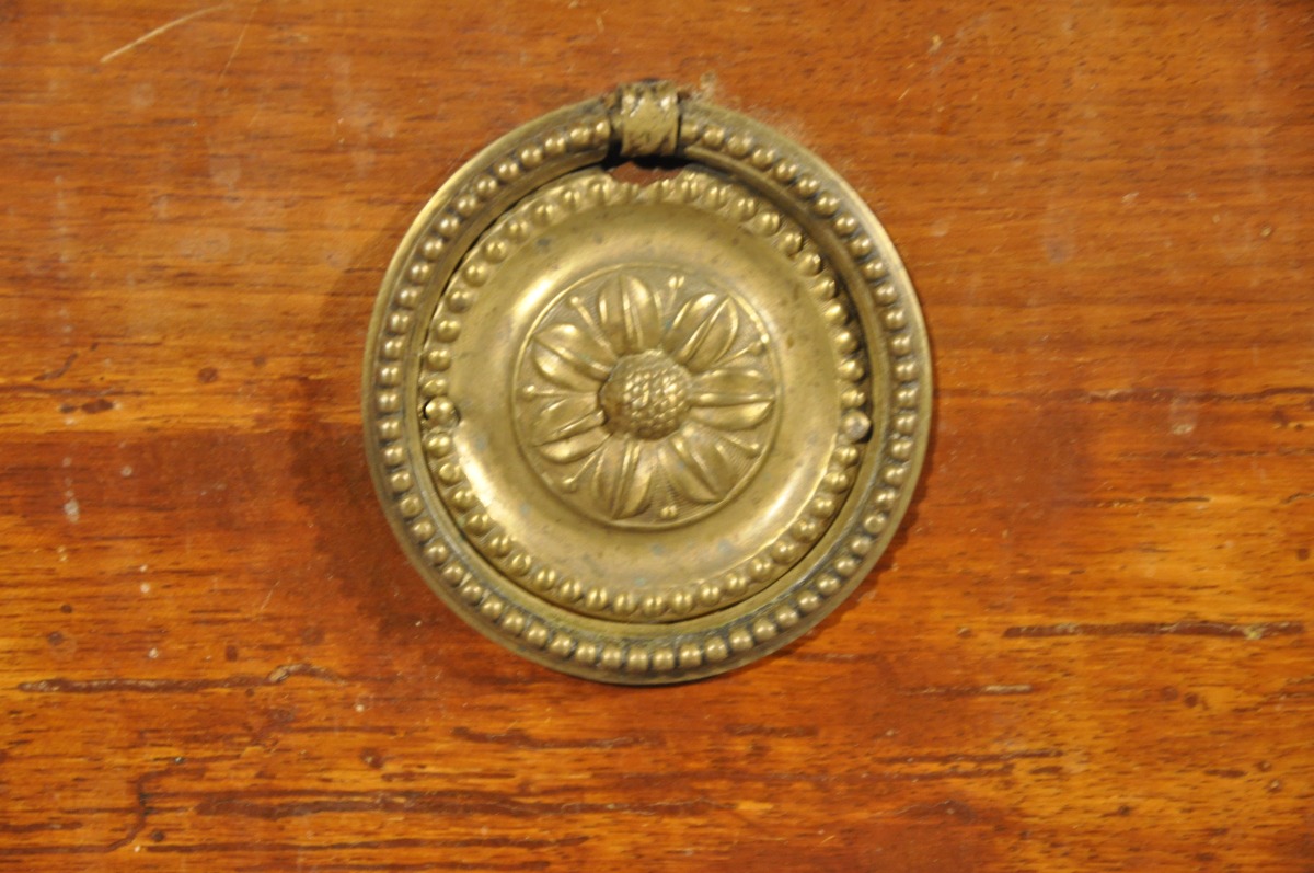 Garnitures de bronze tels qu'entrées de serrures en médaillon rubané et anneaux de tirage ornés de raies de perles et fleurettes stylisées