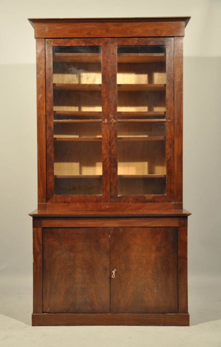 BUFFET-VITRINE deux-corps en acajou et placage d'acajou mouluré. La partie basse ouvrant par deux vantaux découvrant une étagère. La partie haute ouvrant par deux portes vitrées découvrant cinq étagères.