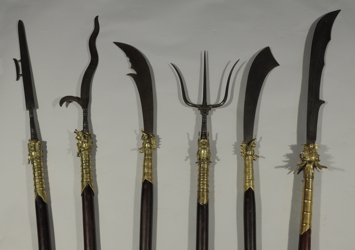 Ensemble de six ARMES D'HAST chinoises, pour la décoration :