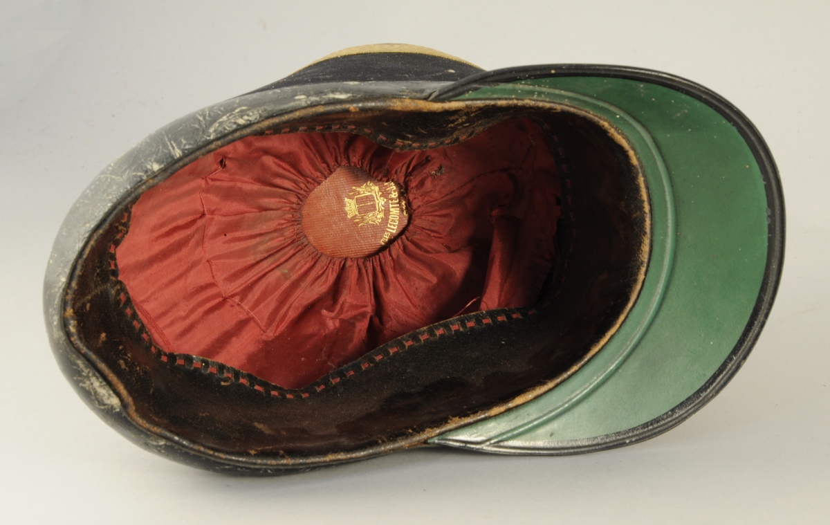 Coiffe intérieur en basane et soie écarlate. Marque à l'or du fabricant " Lecomte et Jourdan à Metz. "