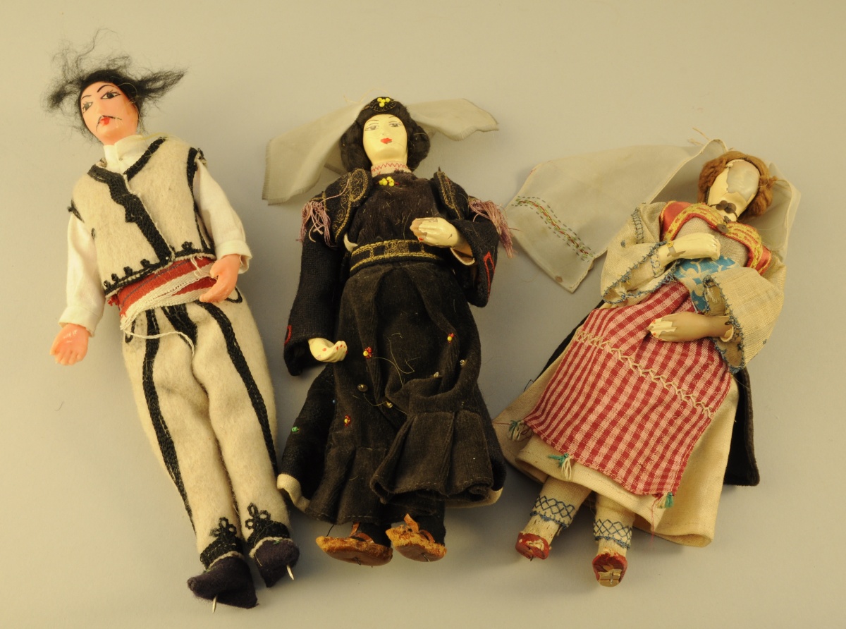 - COUPLE en costume traditionnel de la région de Malësia e Madhe Grande Montagne. L'homme porte le tirq (pantalon) et la femme le xhublet. Haut. 24 et 22 cm. (usures)