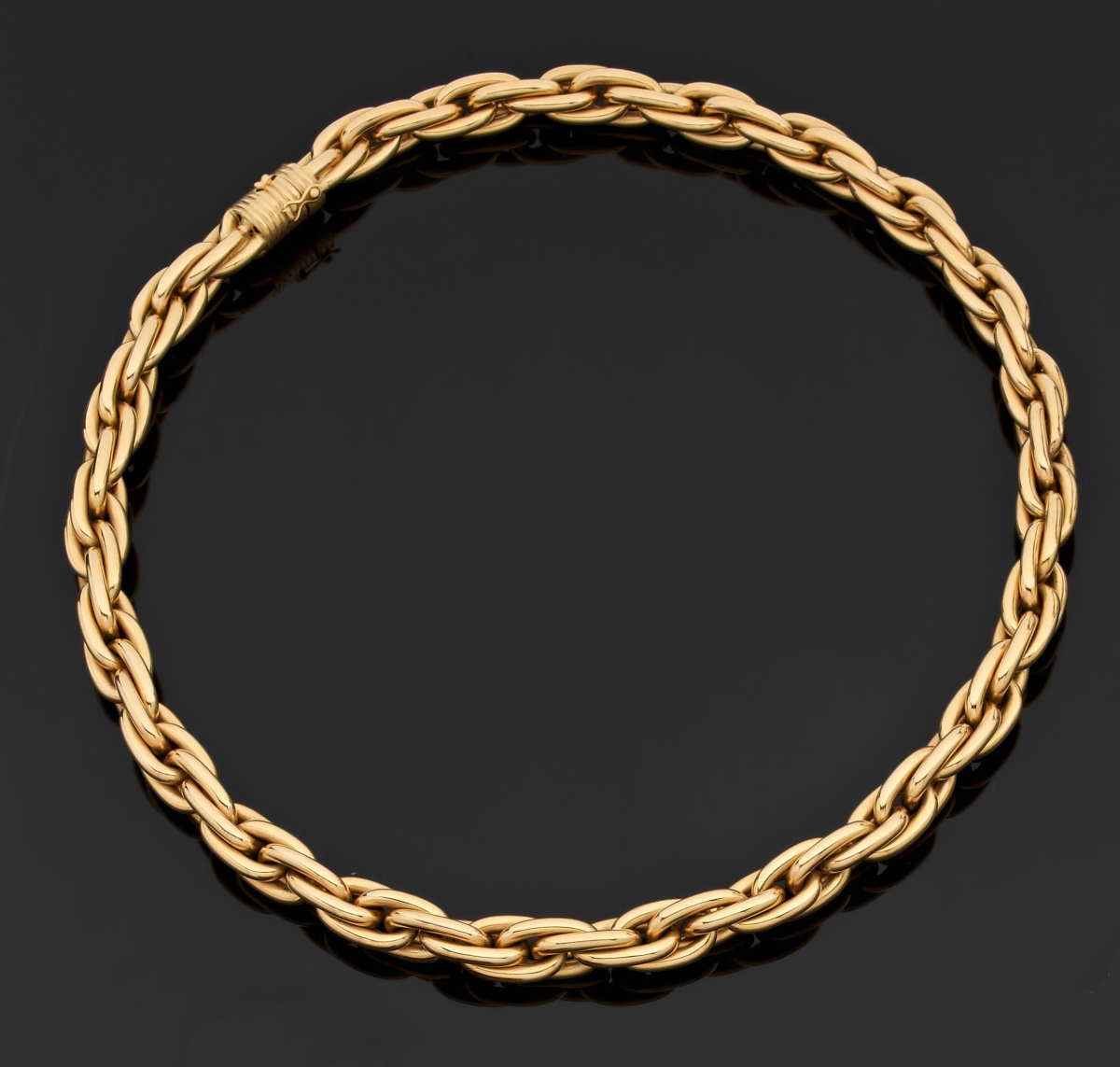 PARURE composée d'un COLLIER et d'un BRACELET à double maillons ovales entrelacés, en or jaune.