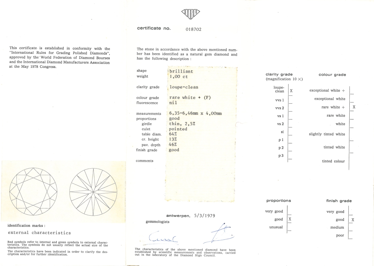 DIAMANT de forme ronde et de taille brillant sous scellé, accompagné d'un certificat du HRD