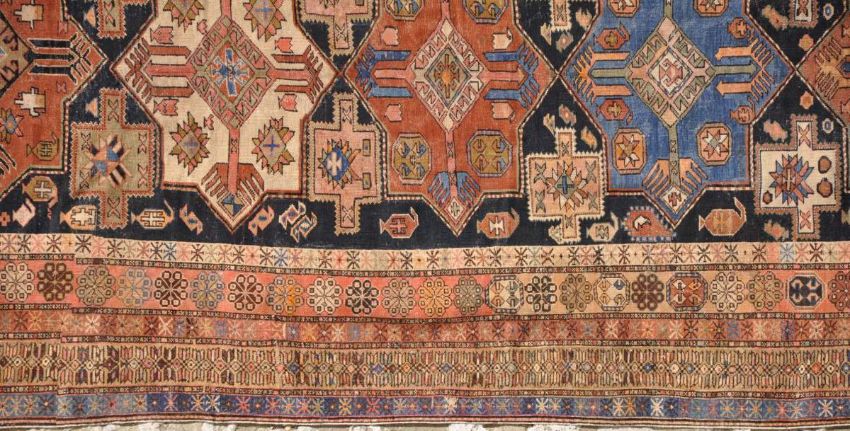 TAPIS turc en laine à motif de cinq médaillons étoilés...