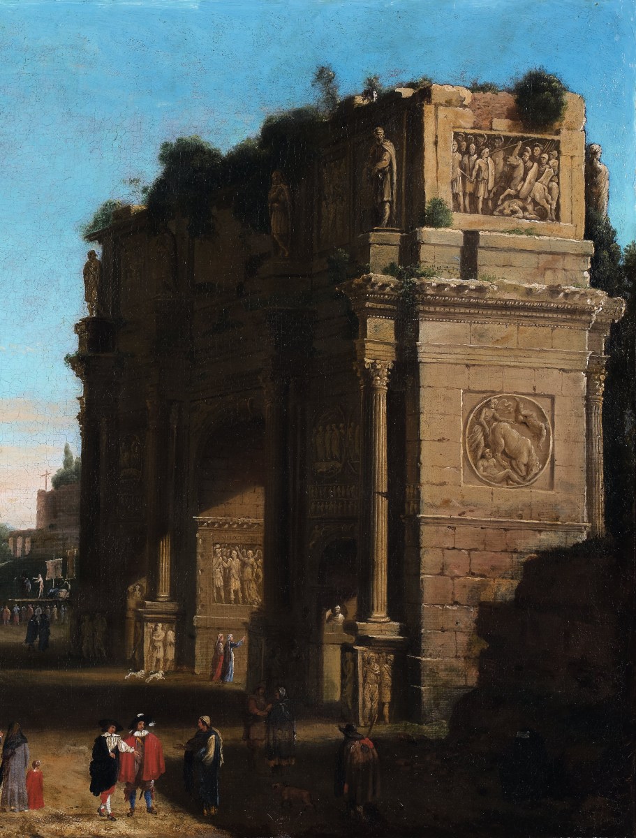 Derrière l'arc de Constantin on peut voir l'église Saint Côme et Saint Damien avant que sa façade ne soit remplacée par une façade baroque en 1632. Herman van Swanevelt qui séjourna à Rome de 1629 à 1638, a connu ces travaux.