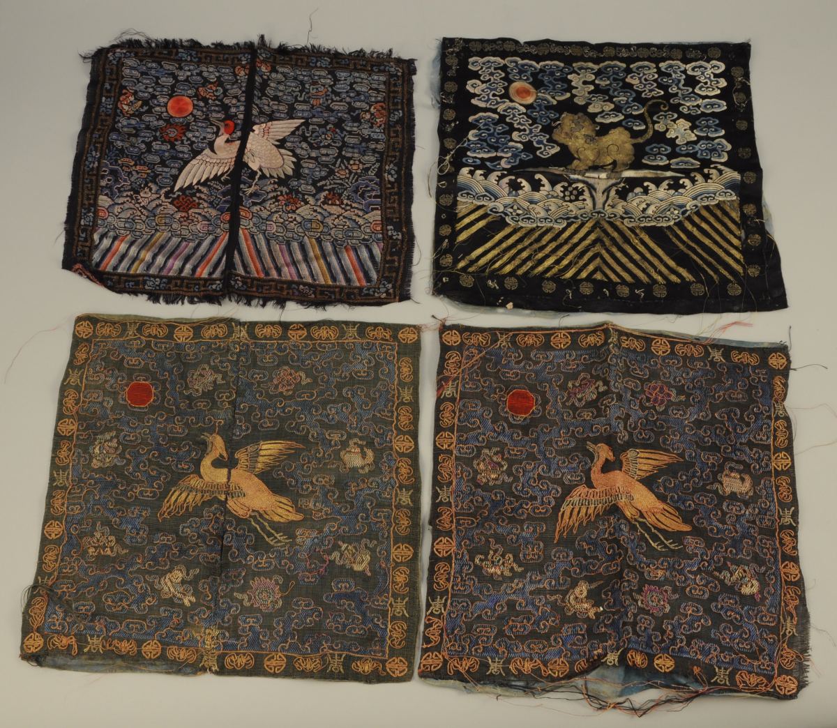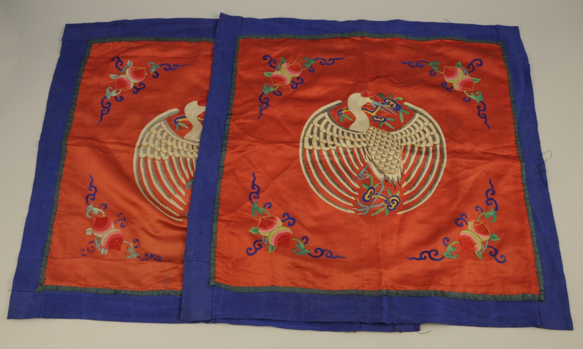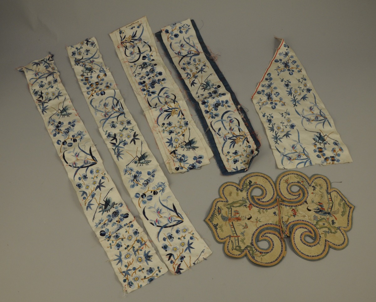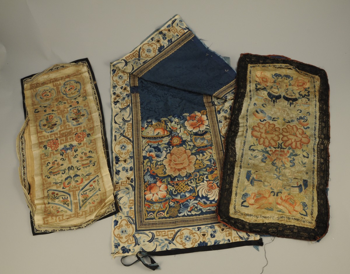ENSEMBLE DE TISSUS dont parties de jupes, panneaux, bandes de manches et carrés de mandarins.