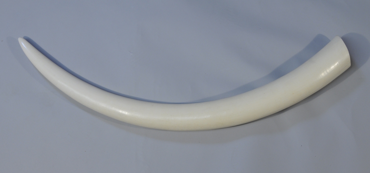 DÉFENSE d'éléphant en ivoire.Hauteur : 103 cm.Longueur sur la grande...