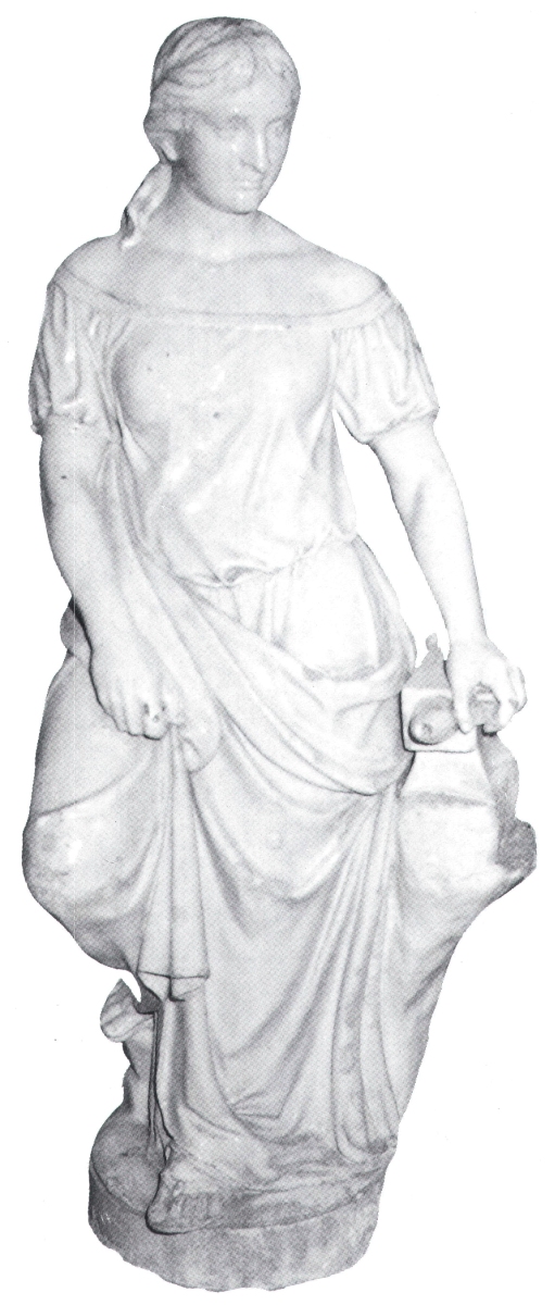 MERCURE et CYBÈLE. Statues terre cuite vernissée, blanche et nervures bleues. Nevers ( ?). XVIIe.-.XVIIIe. Haut. 130 cm (accid., rest.).