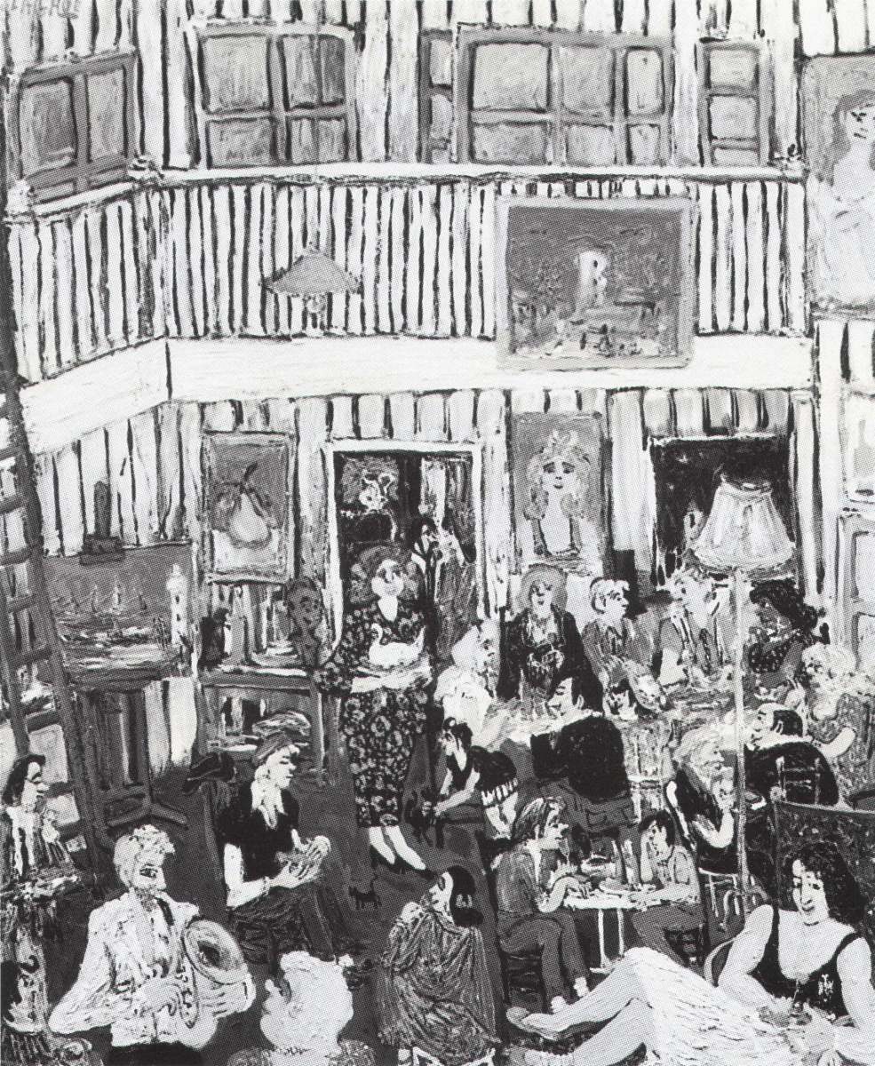 LAGRUE Jean-Pierre. Le souper des artistes. Huile sur toile. Signée en haut à gauche.