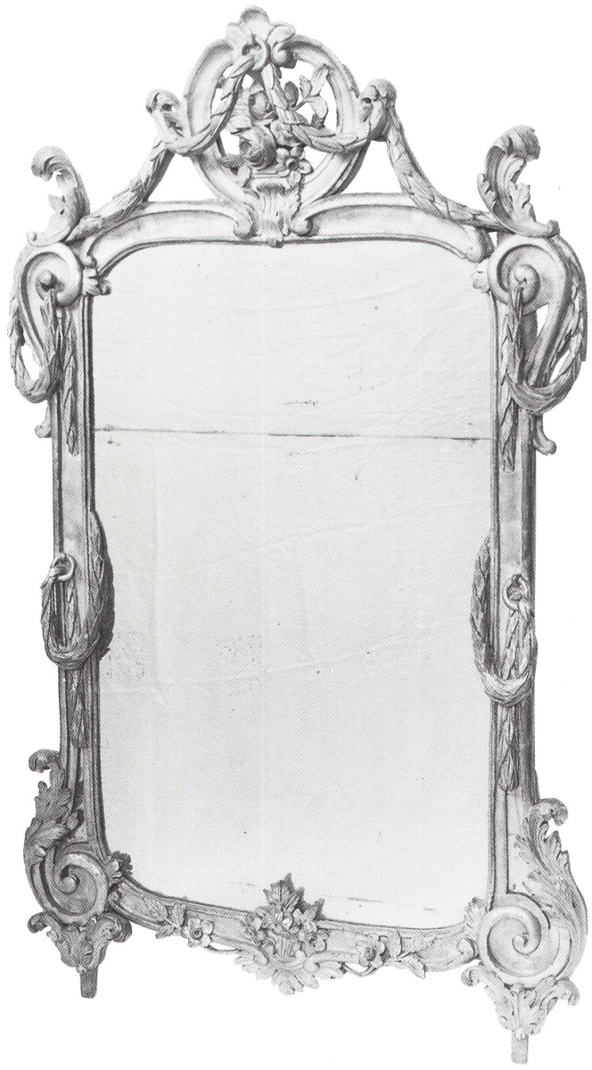 Belle GLACE en bois sculpté et doré au répertoire iconographique caractéristique du XVIIIème : feuilles d'acanthe, tores de laurier, bouquets fleuris, coquilles, anneaux et astragale. Époque Louis XV.