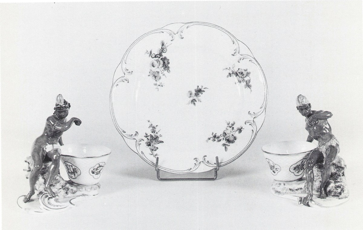 SÈVRES. Belle et rare SUITE DE VINGT-QUATRE ASSIETTES à décor floral polychromé or, avec acanthes en bleu. Marques LL, avec lettres-dates: G, l, 0, P, R, T, U, V. Seconde moitié du XVIIIème.