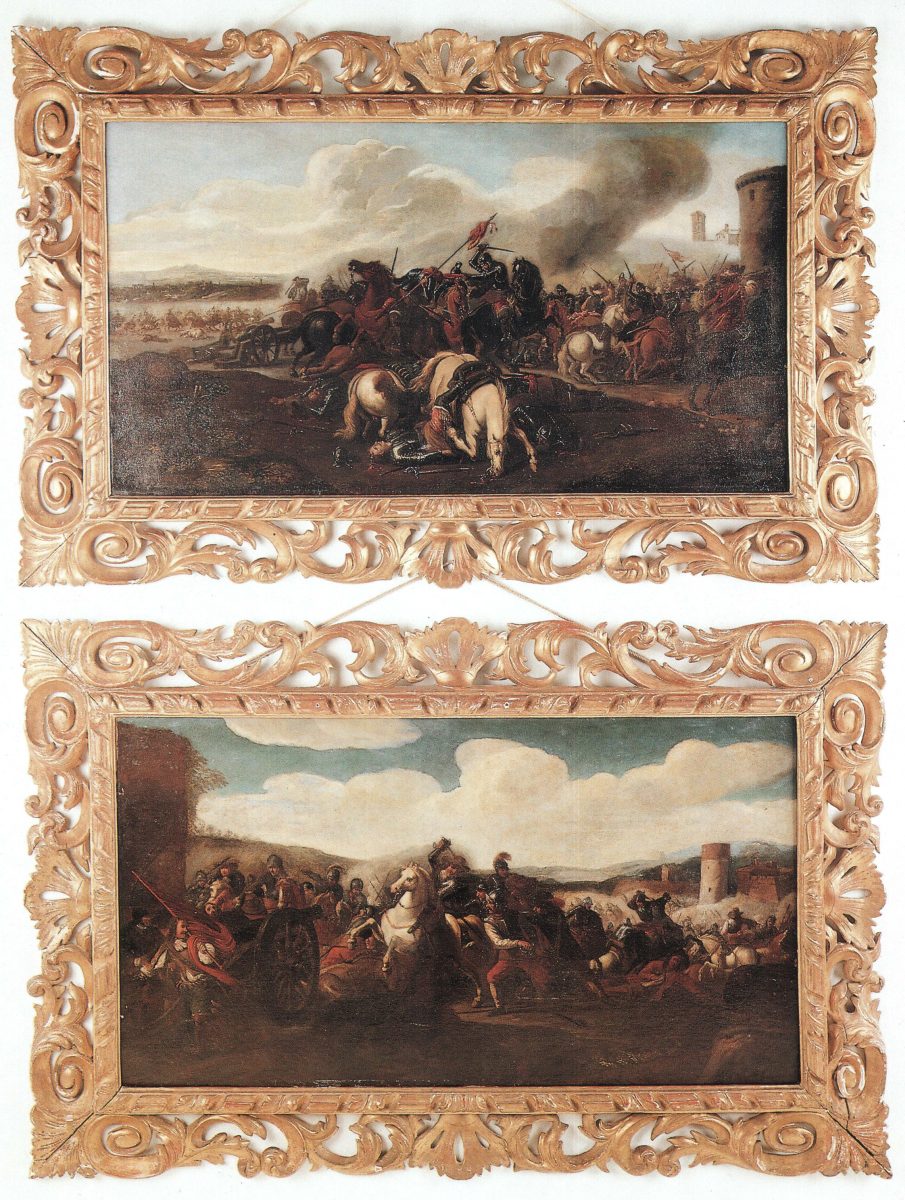 Attribué à Jacques COURTOIS dit le Bourguignon (1621-1676). Chocs de cavalerie. Paire de toiles.