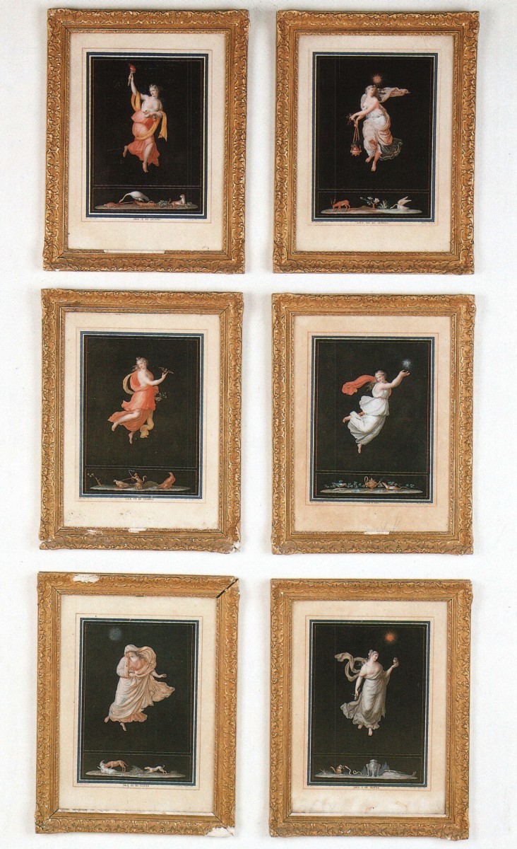 Rare ensemble de gouaches à sujet mythologique d'après Raphaël. L'influence de Raphaël a été très importante sur l'ensemble de l'art italien jusqu'à la fin du XIXe siècle, particulièrement sur les travaux décoratifs. Raphaël, avec les Loges du Vatican et les fresques de « L'Histoire de Psyché » à la Logia de Farnésina, influença tous les grands architectes et décorateurs de la fin du XVIIIe et du début du XIXe tel Maestri.