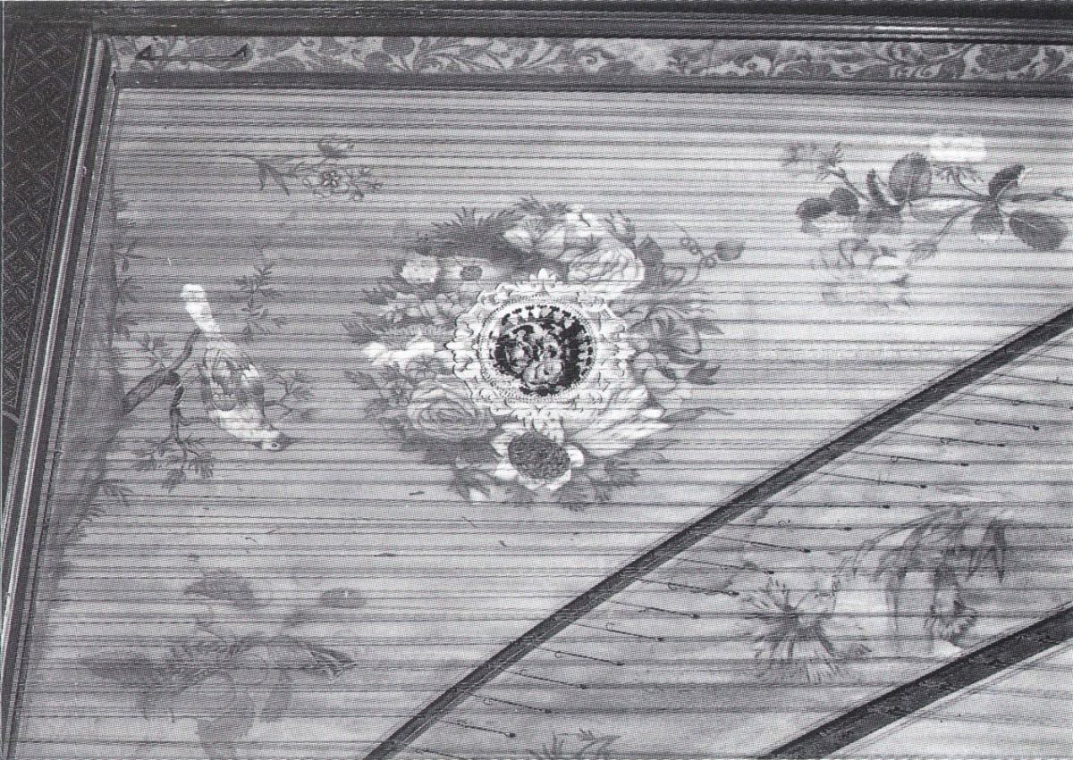 La table d'harmonie est peinte d'un très joli décor de guirlandes, de liserons, d'œillets et de roses, et d'un oiseau perché sur une branche. Elle date du XVIIIe siècle.