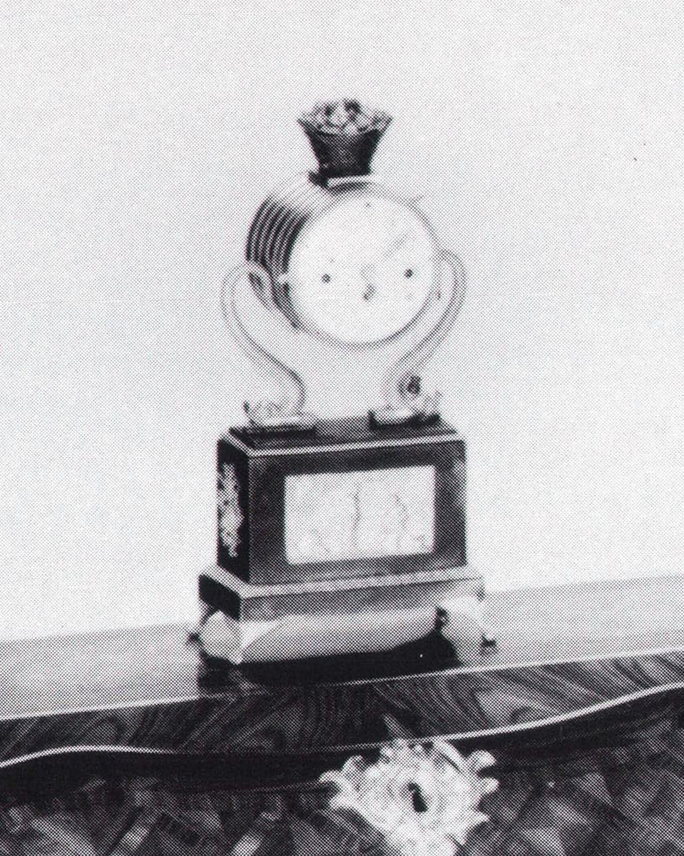 Le mouvement comporte une sonnerie de un quart d'heure sur deux cloches avec tirette de répétition.