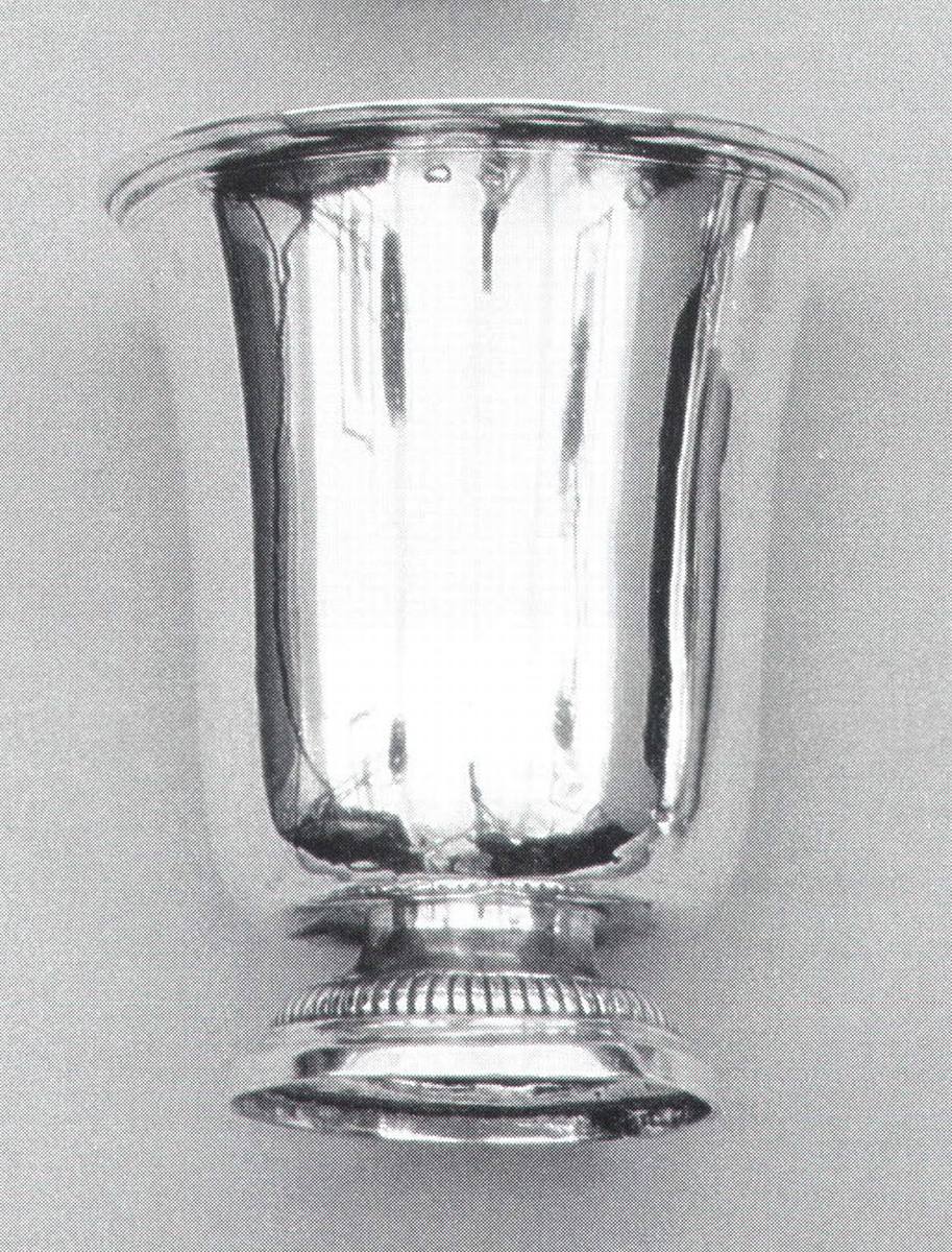 TIMBALE en argent uni, de forme tulipe à piédouche, doucine et gorge, sous le bord, gravée « Marie Bonnin – Anne-Marie Fleury – F. I. E. G. Goujon ».