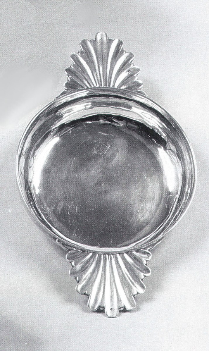 Diam. 14,7 cm, Long. aux anses 25,2 cm, Haut. 3,5 cm, Poids 295 g.