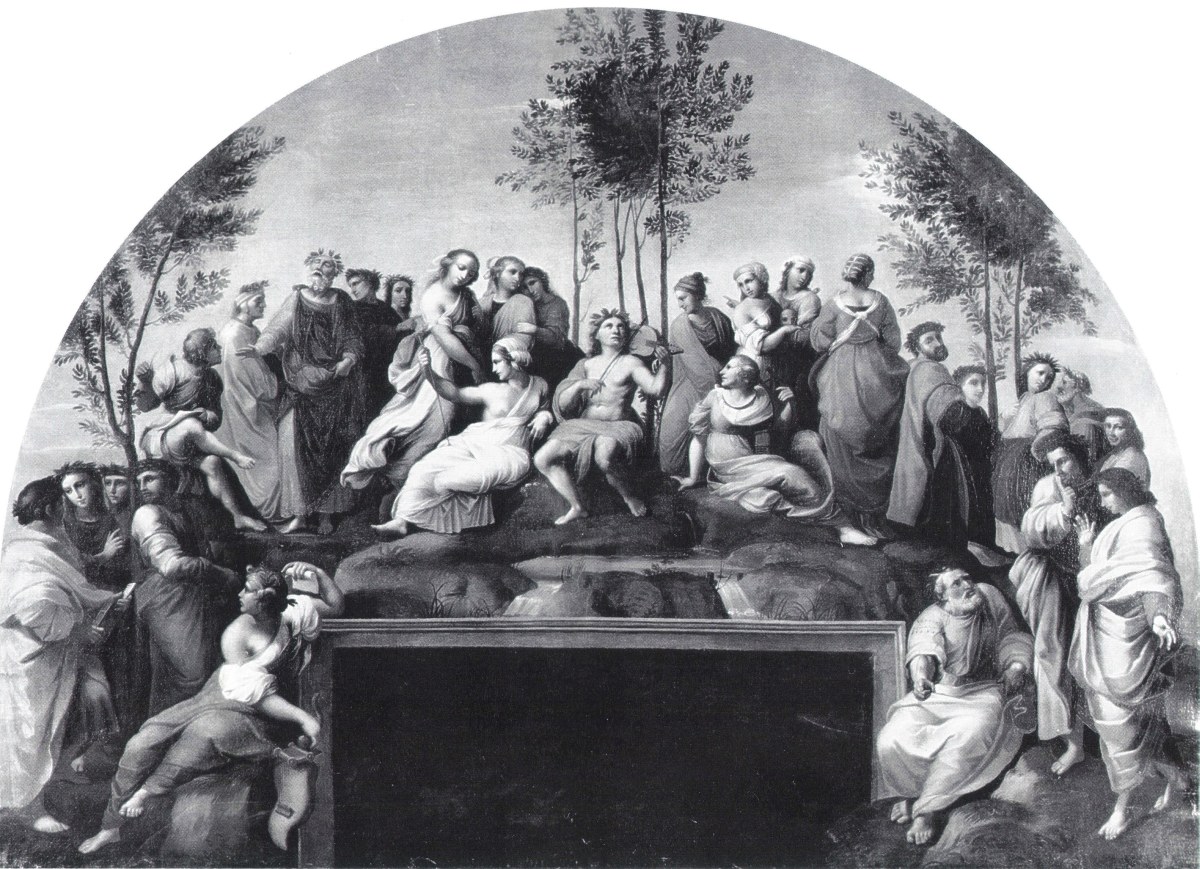 D'après la fresque de RAPHAËL, salle de la Signature, du Vatican (1508¬1511) :