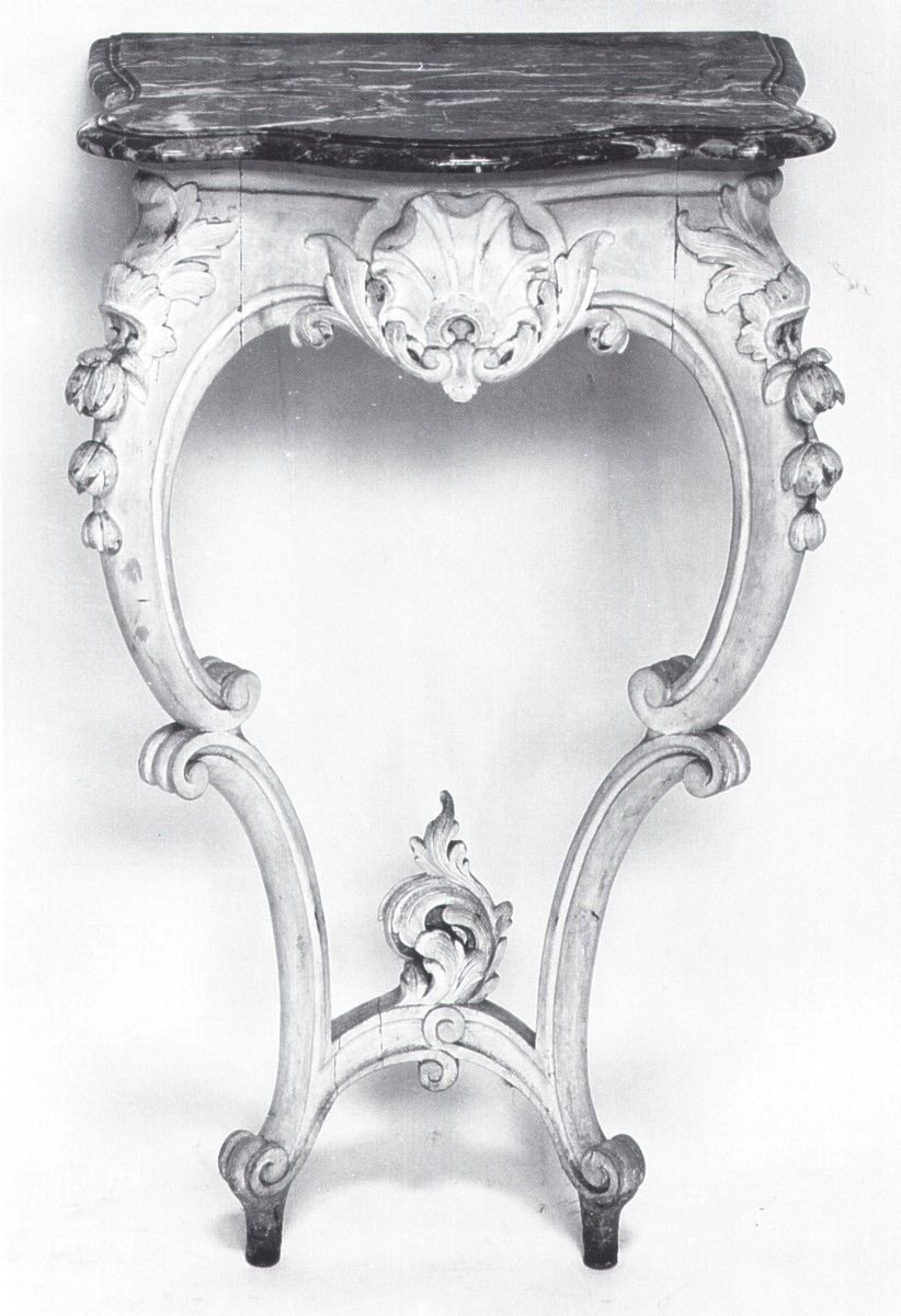 Curieux ensemble de QUATRE PETITES CONSOLES mouvementées surmontées de QUATRE...