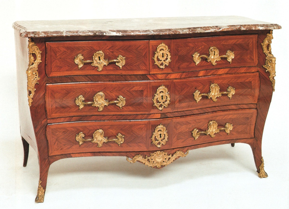 Mathieu CRIAERD : reçu maître le 22 avril 1747. Une commode identique, avec de légères différences dans les chutes et les poignées de tirage, est reproduite dans l'ouvrage de P. Kjellberg (vente Versailles 1988).