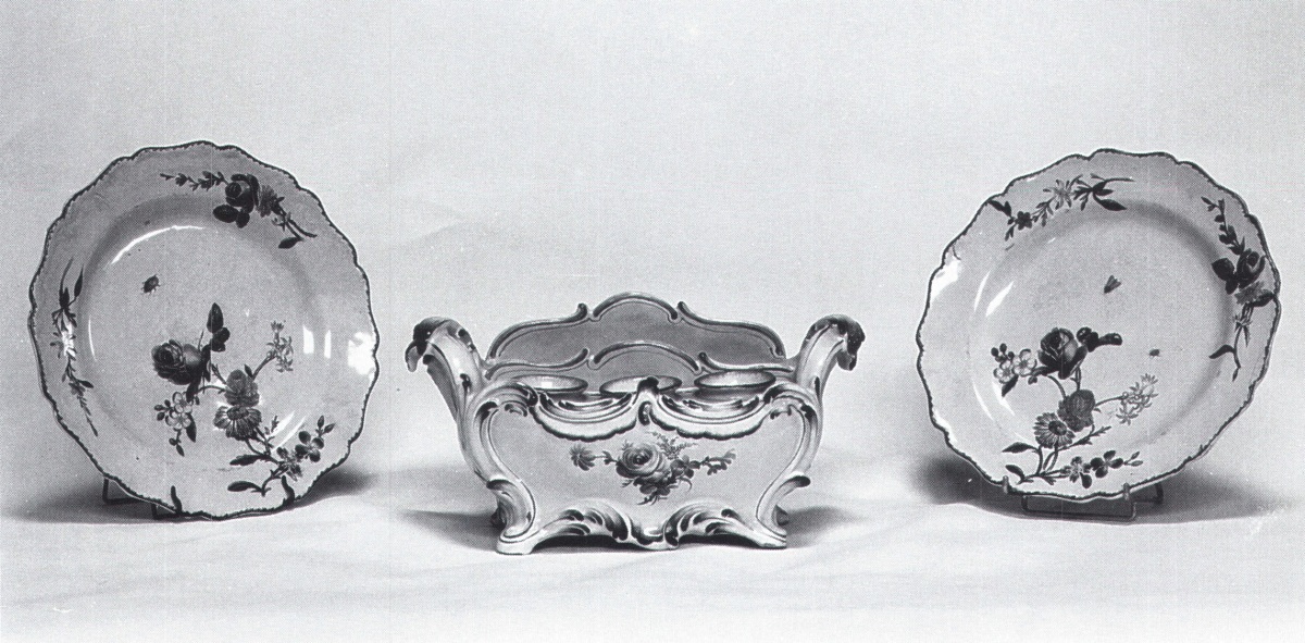 MARSEILLE : DEUX ASSIETTES en faïence du XVIIIe siècle, à décor polychrome d'insectes, fleurs et feuillages. Marque de la Veuve PERRIN (petits éclats et petites restaurations dans une bordure).