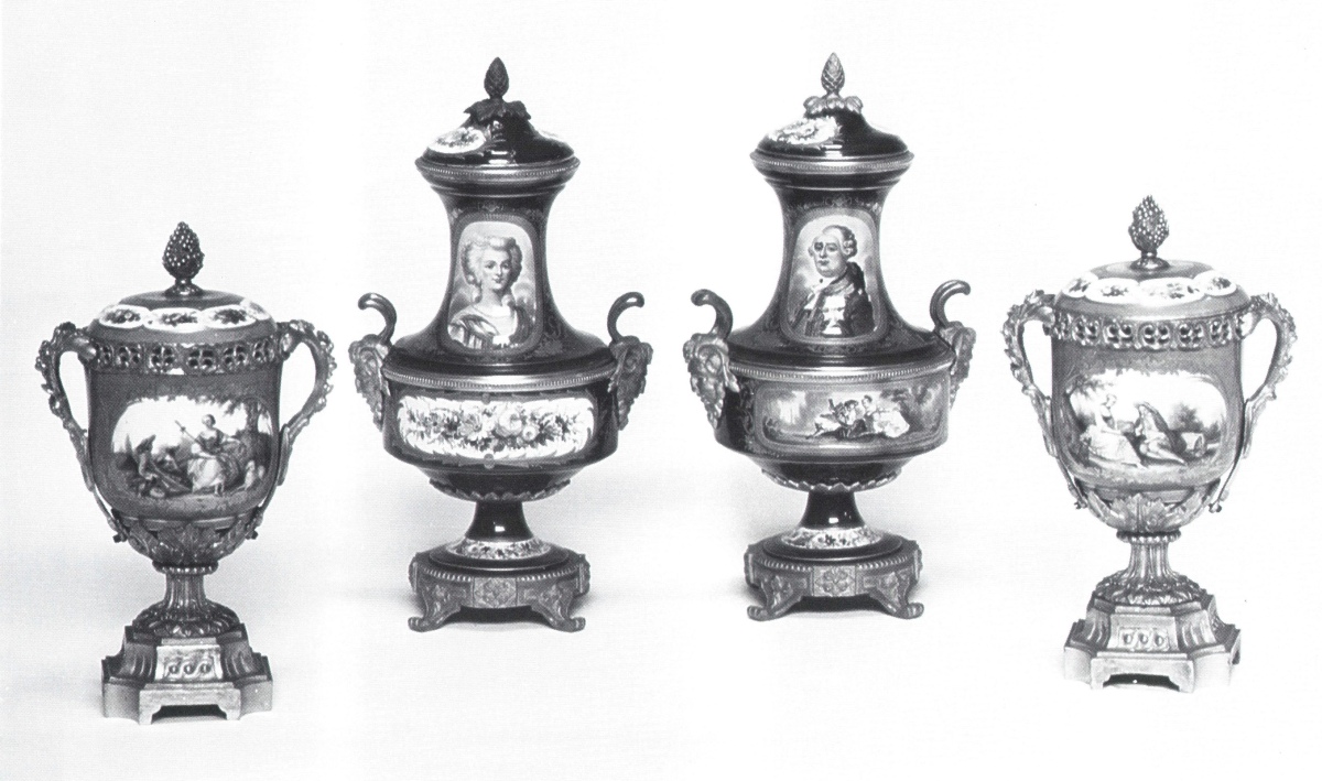 SÈVRES (genre de) : PAIRE DE VASES couverts (réparations au...