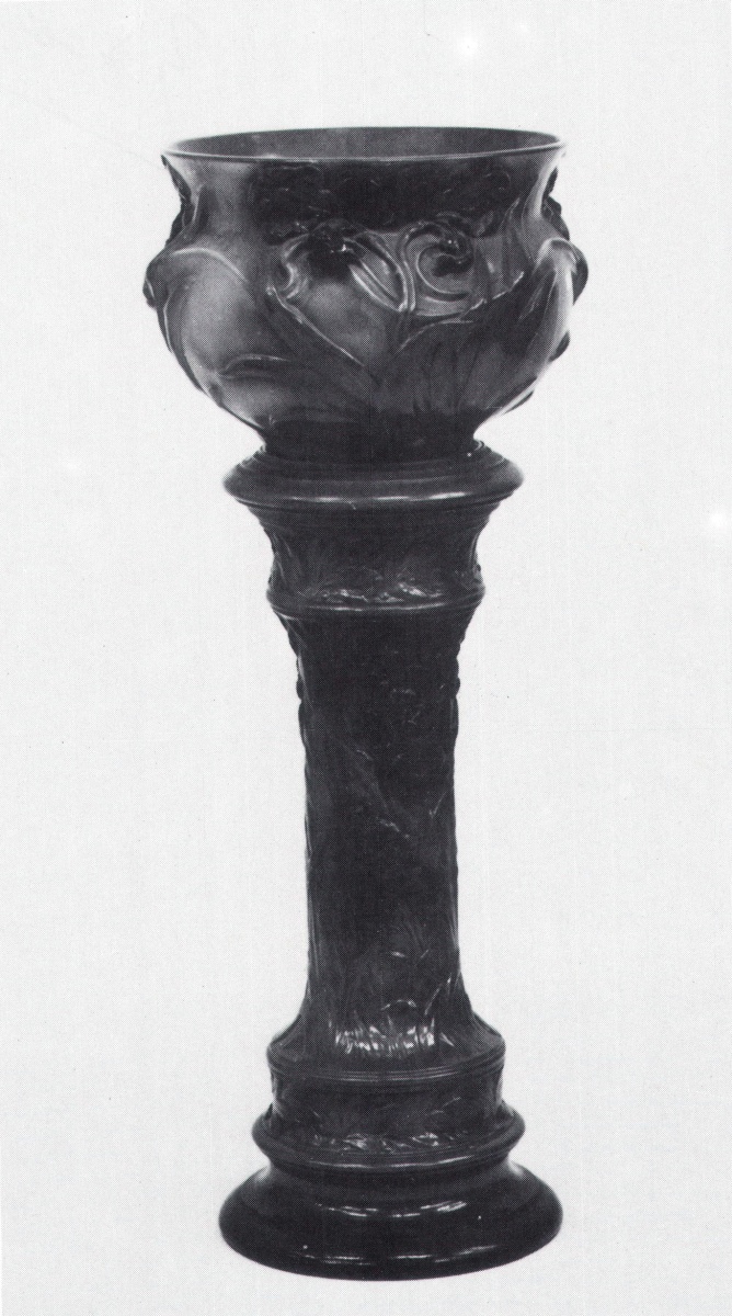 Barbotine de Sarreguemines, CACHE-POT et sa CONSOLE en céramique à...