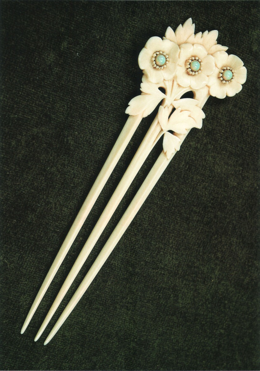 PEIGNE ivoire or opale, signé: L. GAILLARD.