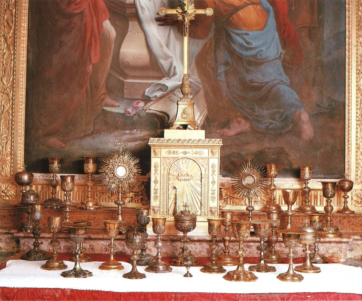 CIBOIRE en vermeil à décor de pentures et cabochons incrustés d'émaux; avec croix de Malte. Poinçon Minerve.
