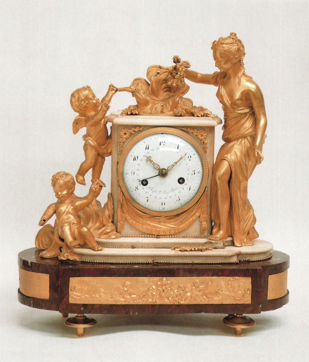 Elle est ornée d'une femme drapée symbolisant l'Amour et de deux amours sur des nuées.