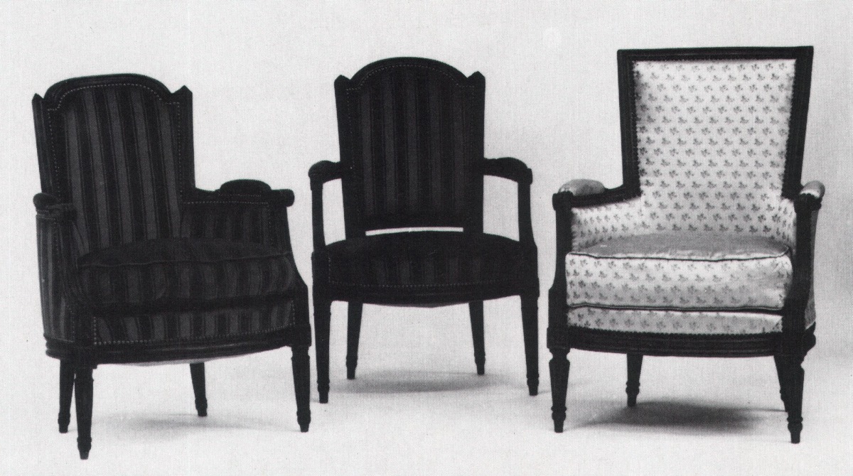BERGÈRE en bois naturel, pieds fuselés, cannelures à asperge. Dossier trapézoïdal en cabriolet.
