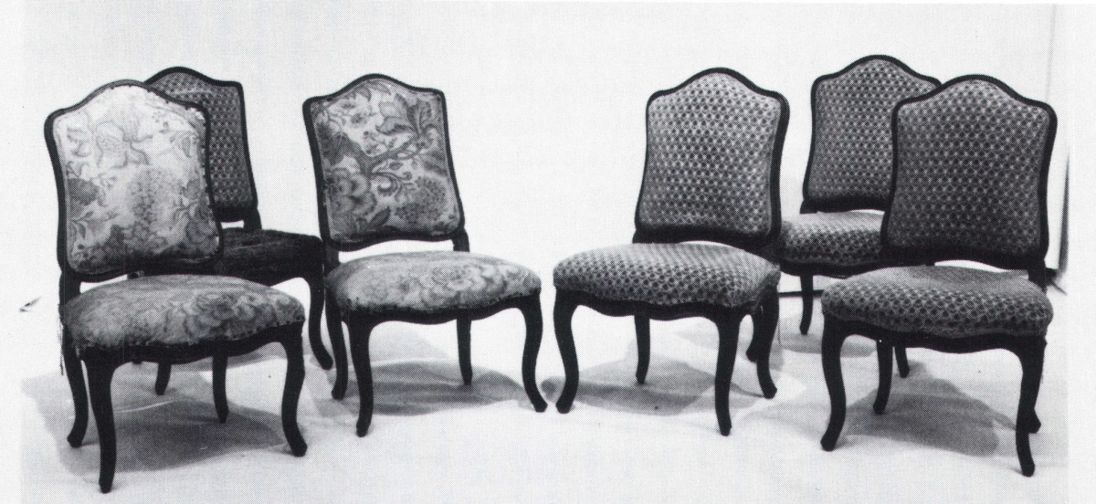 Six CHAISES à dossier plat mouvementé, de trois modèles dont...