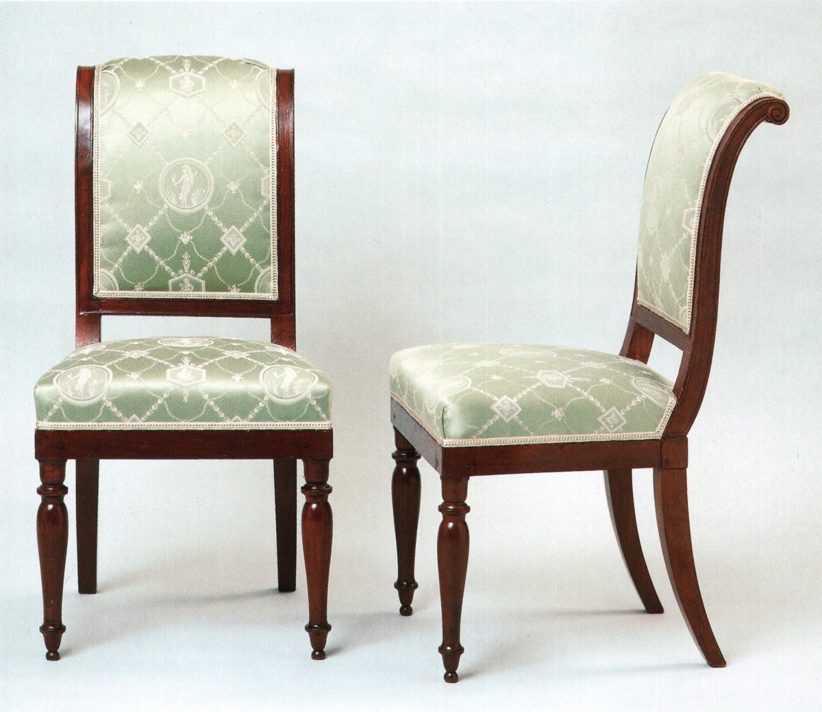 Une chaise d'une série de deux (présentant quelques différences dans le dossier) figure dans le livre de G. Janneau, Le siège en France.