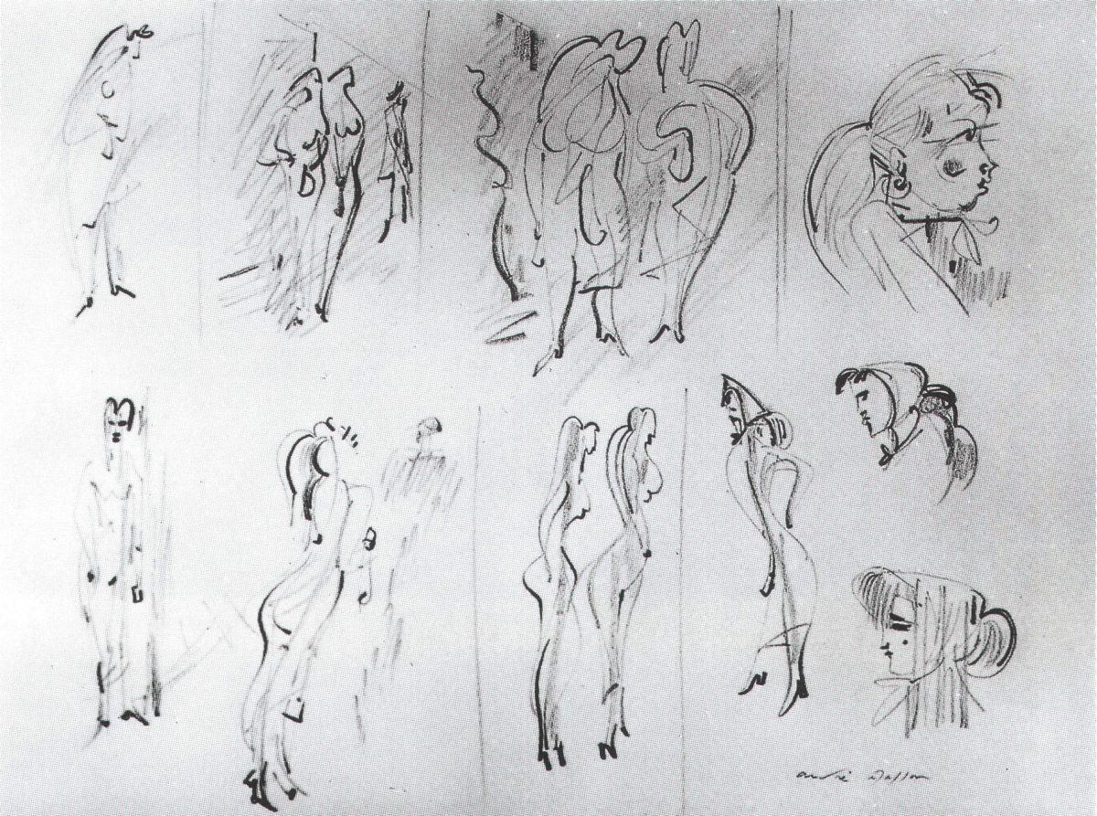 André MASSON (1896-1987). Féminaire pour la rue St Denis (1957). Dessin au crayon, signé en bas à droite. Ce grand et superbe dessin comprend dix très belles études sur des femmes de la rue St Denis à Paris. Dessin qui résume les premières recherches faites par André Masson en vue de son album de gravures Féminaires et de plusieurs peintures sur le même sujet.
