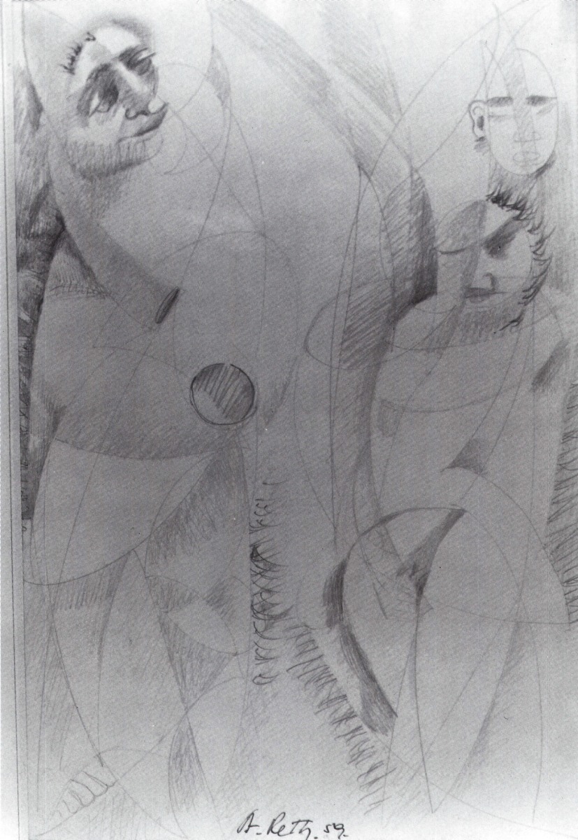 RETH Alfred (1884-1966). Composition. Mine de plomb et encre, signé en bas au milieu et daté 1959. Exposition « Commémoration du centenaire d'Alfred RETH », du 6 avril au centenaire d'Alfred RETH » du 6 avril au 13 mai 1984, à Albi, Musée Toulouse Lautrec, Palais de la Berbie.