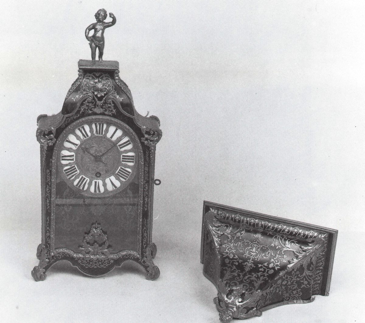 CARTEL en marqueterie Boulle, cadran signé François CHAMPION à Paris. Marqueterie en écaille de tortue et cuivre ciselé et découpé à décor de rinceaux fleuris. Bel ornementation de bronzes doré : jeune enfant, Cérés, espagnolettes surmontant les pieds à enroulement, coquilles, rocailles et fleurs. Epoque Régence.