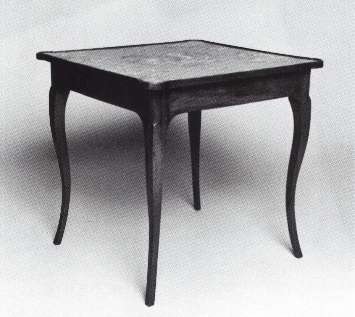 TABLE DE CABARET en noyer, pieds cambrés. Epoque Louis XV. Dessus en toile de Jouy d'après OBERKAMPF.