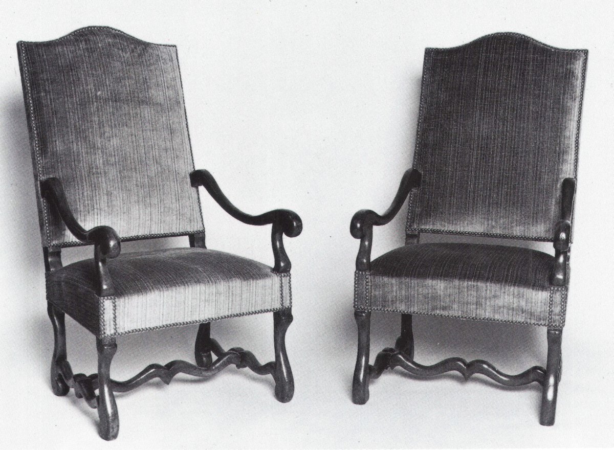 PAIRE DE FAUTEUILS à haut dossier, en bois naturel, dits « à os de mouton ». Travail ancien, XVIIIème siècle.