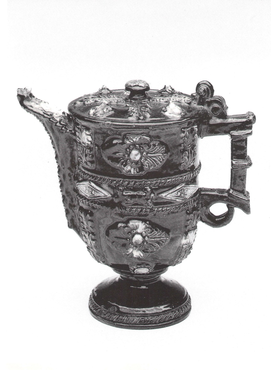 AIGUIÈRE DÉCORATIVE en poterie vernissée lustrée à glaçure marron. Décor...