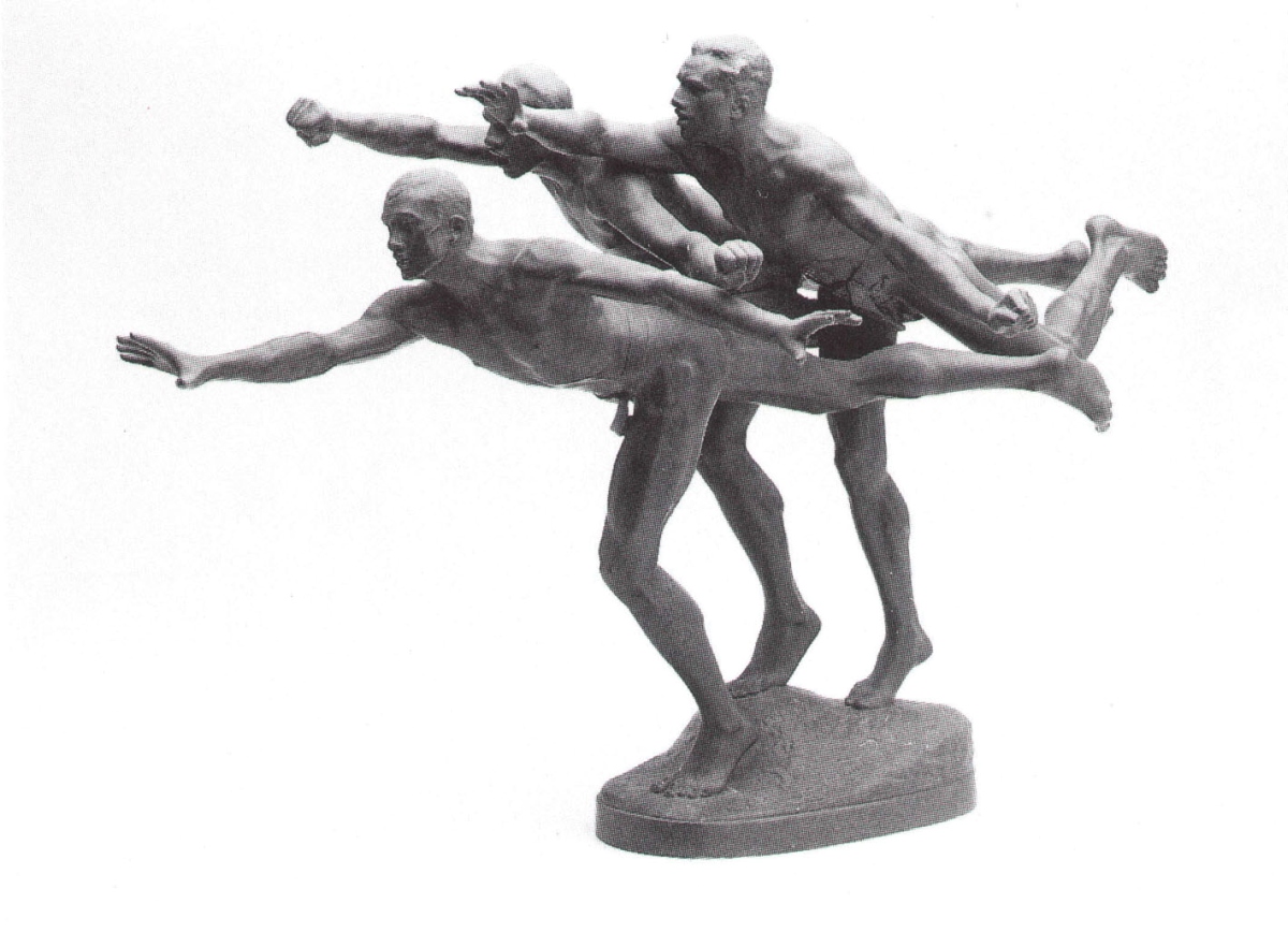 Alfred BOUCHER (1850-1934). « Au but! ». Bronze patiné noir. Signé à la base et cachet du fondeur: « Siot-Decauville, fondeur, Paris». Porte le no B.580.