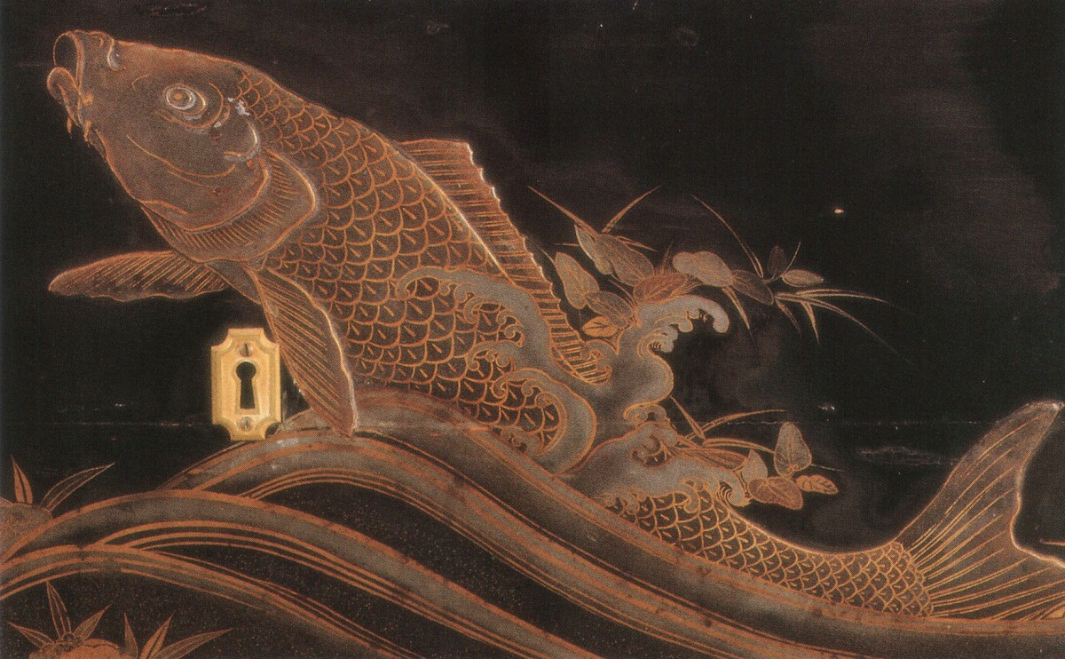 La carpe occupe une très bonne place dans la légende japonaise, elle personnifie une résolution indomptable, la persévérance et la ténacité car elle affronte courageusement les plus forts courants d'eau et saute même des cascades. KO-JI-HO-TEN.