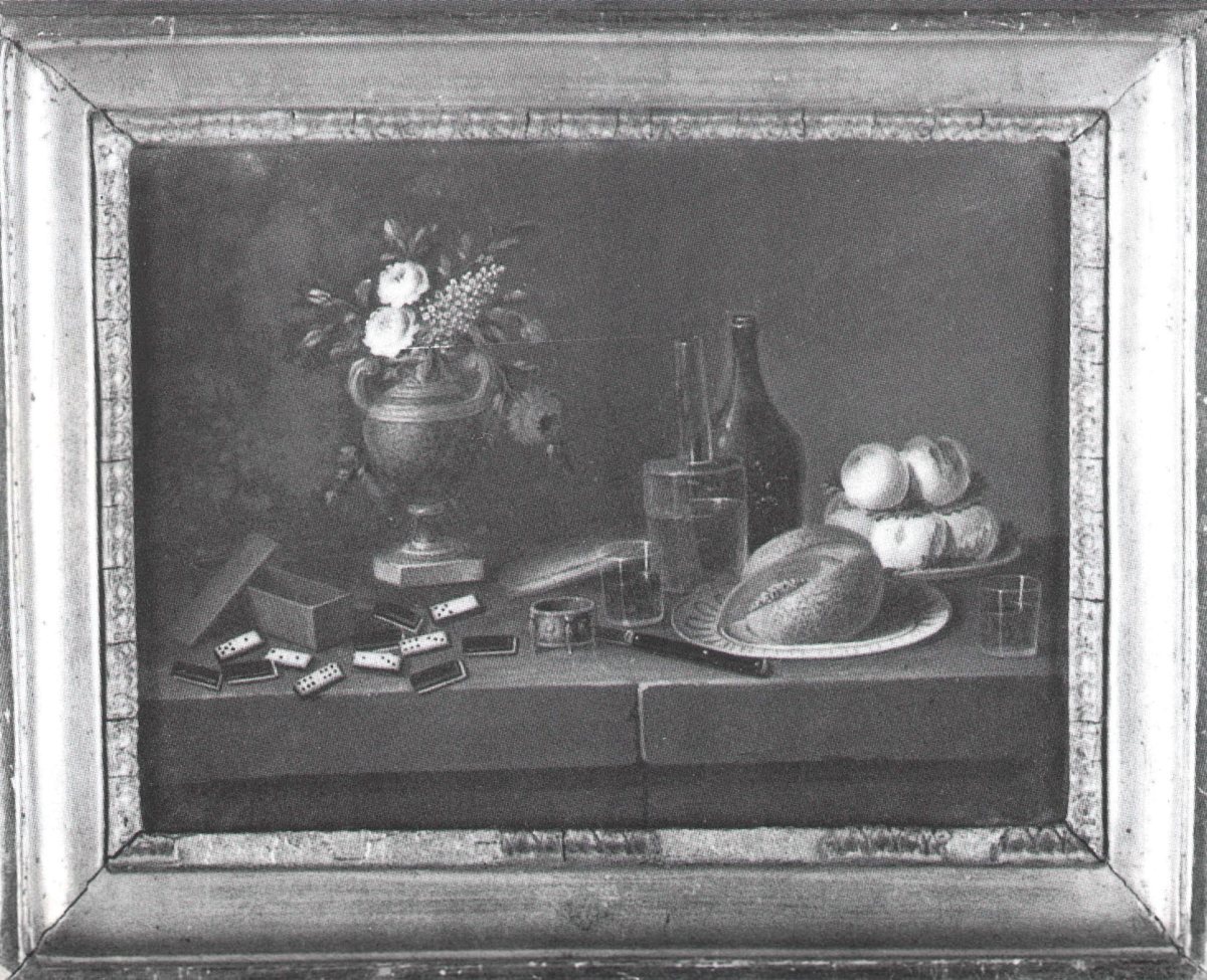 LELONG (École française du XIXe). Nature morte au melon. Gouache sur carton. (Epidermures, mouillures.)